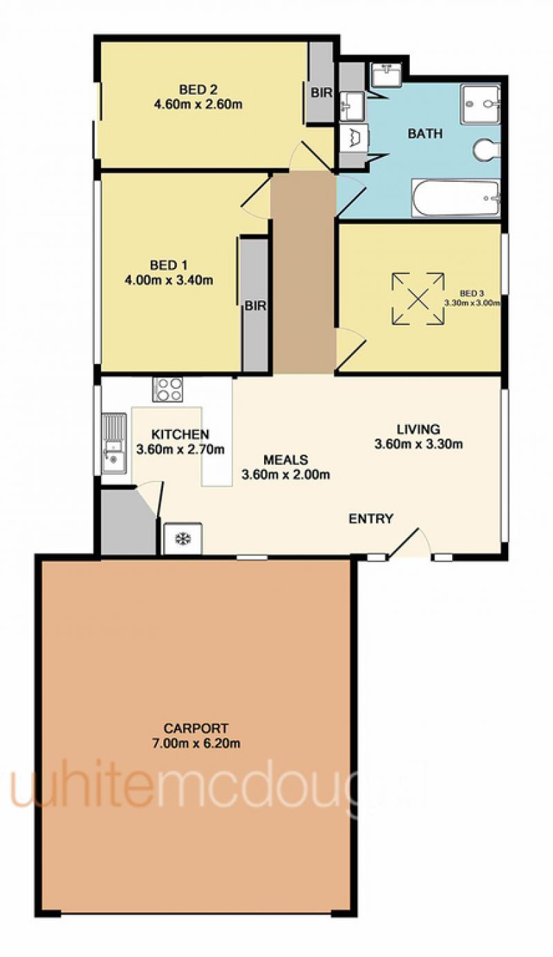 Tucked behind a high private fence is this neat and tidy home comprising open plan meals / living, bright updated kitchen.